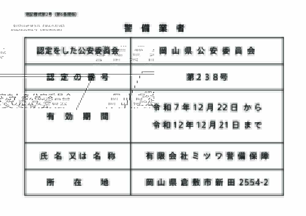 4月1日以降は、認定証の代わりに所定の様式の標識を警備業者が自身で作成し、主たる営業所に掲示することになります。